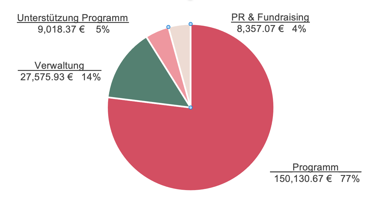 In 2020 betrugen die Gesamteinnahmen von Pink Door 213.077,47€. Die Ausgaben lagen bei 195.082,04 €. Wir beenden unser 6. Jahr, in dem wir essentielle Dienste anbieten, die zur Heilung und Wiederherstellung sexuell ausgebeuteter Frauen beitragen, mit dem Gedanken an unsere treuen Partner, die unsere Arbeit überhaupt erst ermöglichen. Jede Ausgabe von Pink Door wird genau überprüft, um sicherzustellen, dass alle Spenden im vollsten Umfang genutzt werden, um Frauen auf ihrem Weg zum Ausstieg zu unterstützen.